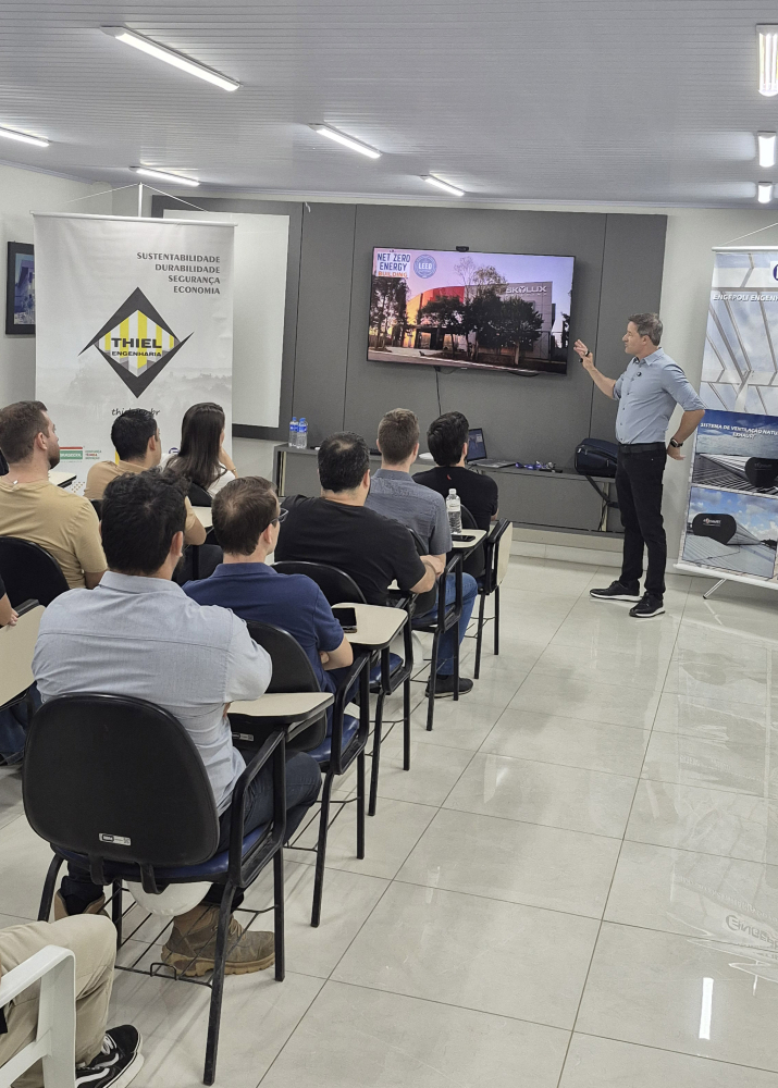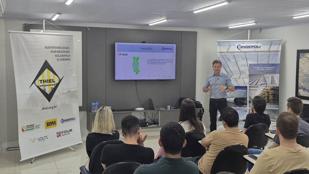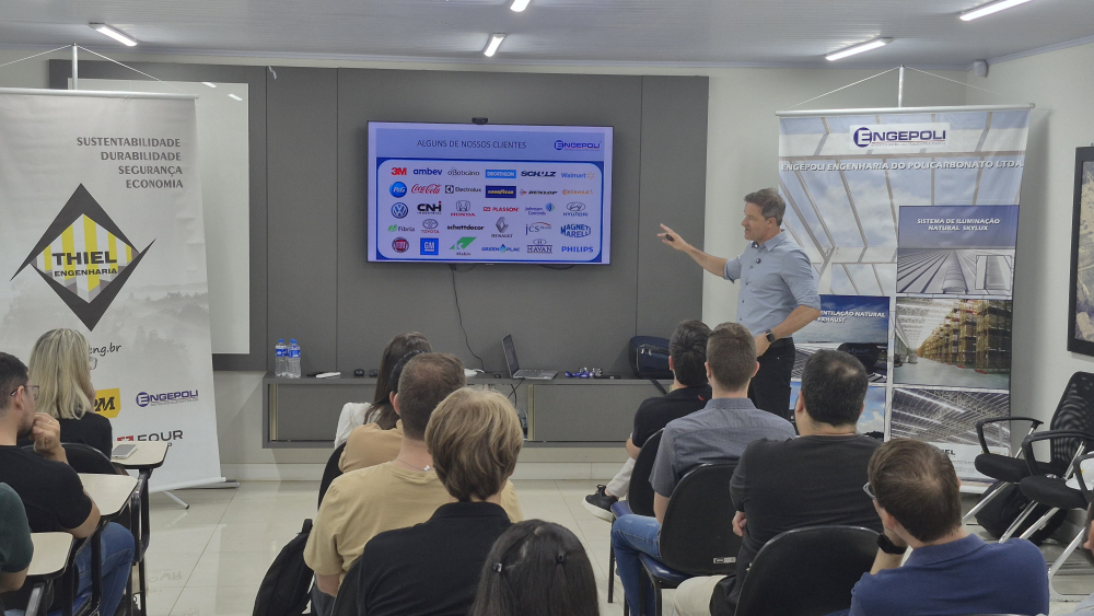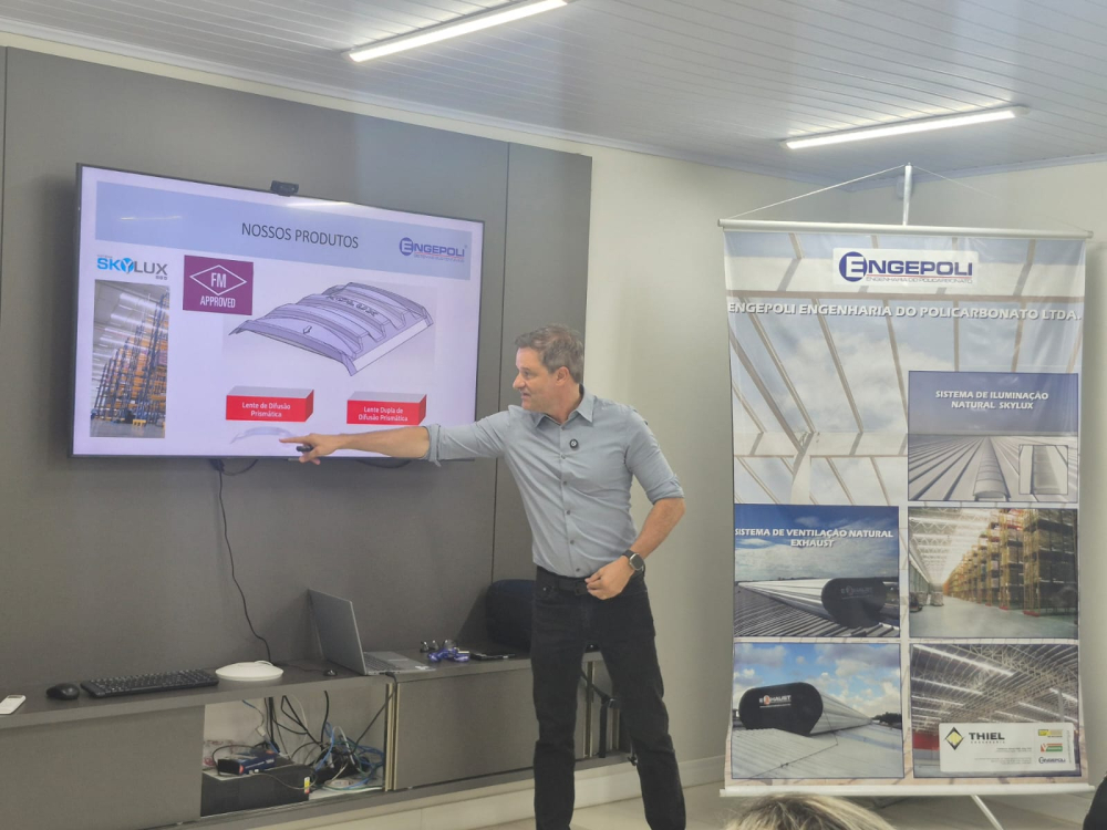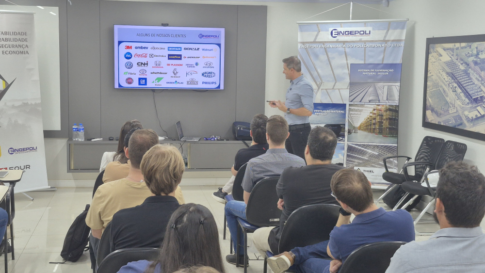 O tema da palestra foi: "PROJETANDO AMBIENTES INDUSTRIAIS CONFORTÁVEIS E EFICIENTES", destacando as principais características e benefícios das principais linhas de produtos da ENGEPOLI.